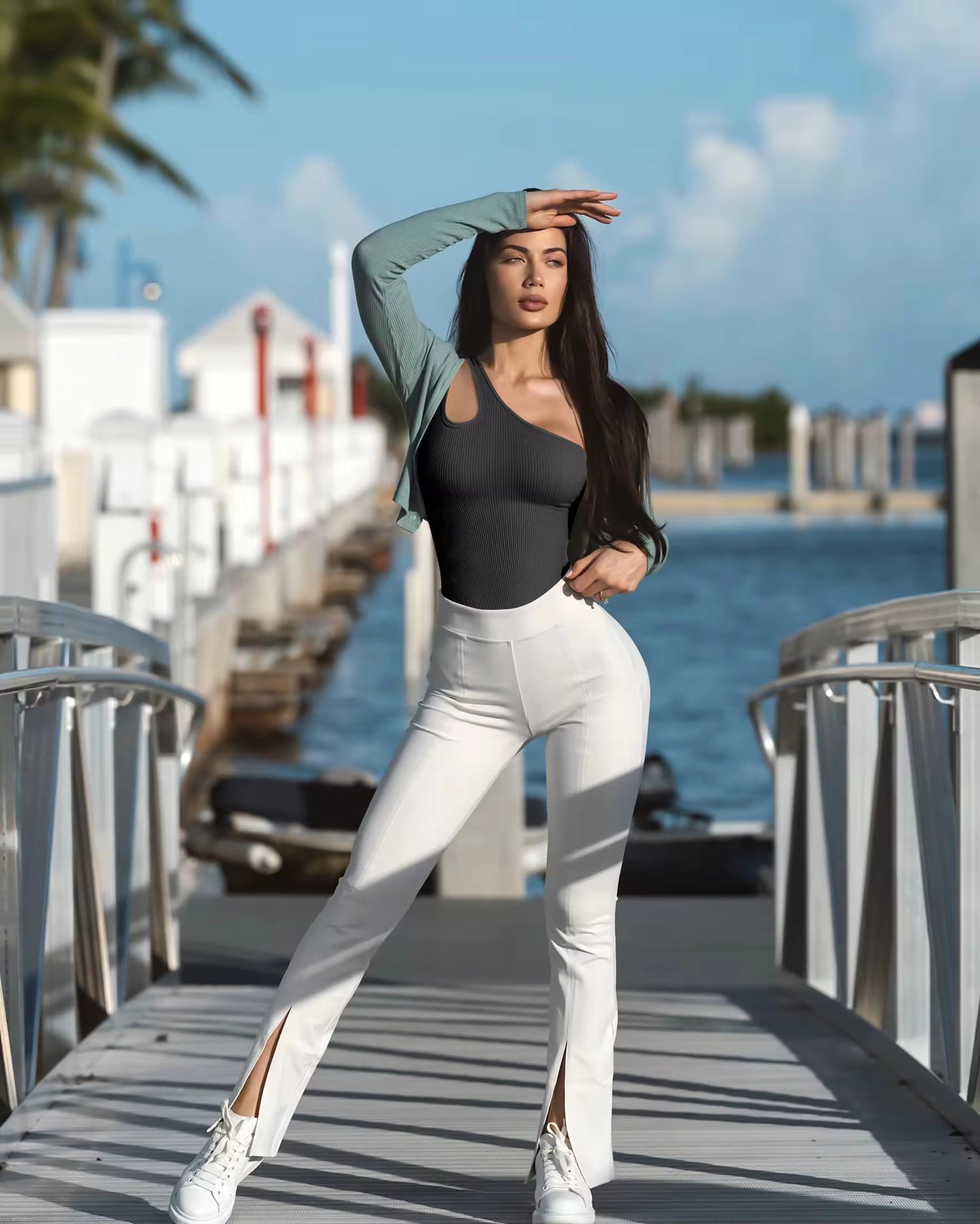 ¡Soy una ávida coleccionista de trajes de cuerpo! Este en particular es muy sexy y cómodo. Acentúa el cuerpo y ofrece el detalle de un hombro. Verdadero a la talla. No se sube y el material es muy bonito. Una gran adición a cualquier guardarropa.