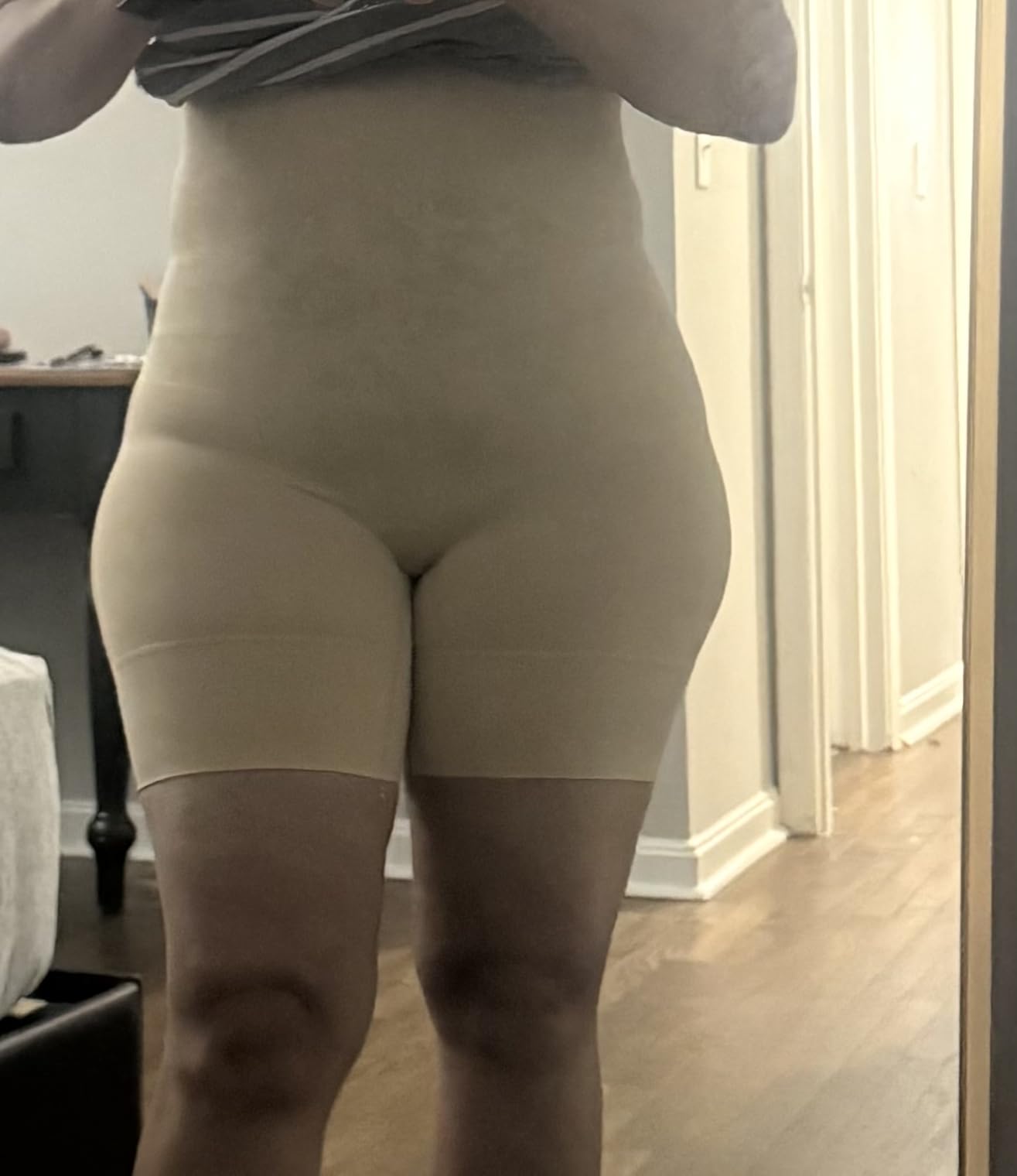 Simplemente genial!!!! Ajusta en su justa medida… sujeta pero deja respirar.. yo me compre mi talla habitual.. quizá si coges una tala menos consigas estilizar todavía más pero yo solo buscaba que sujetara sin hacer ninguna marca. No se enrolla en los muslos y en la parte de arriba con los tirantes puestos tampoco. Genial para vestidos porque no da mucha calor y no marca nada. Muy recomendable